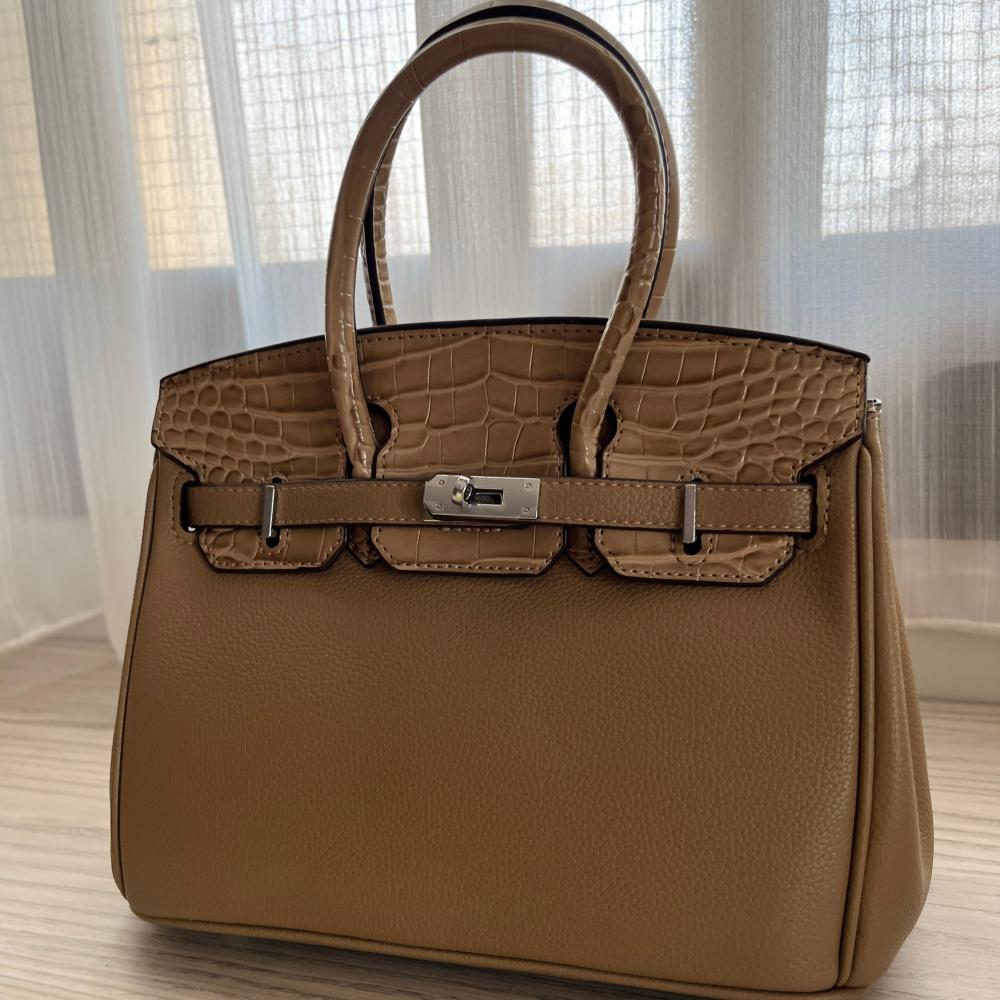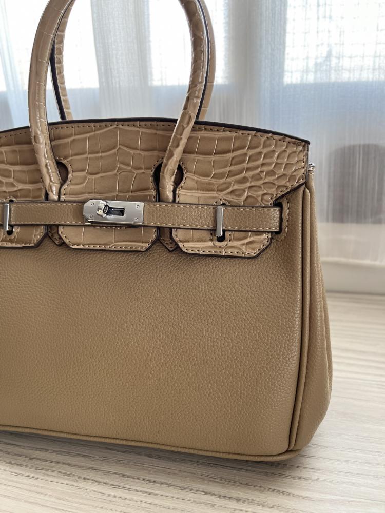 Birken Bag khaki بيركن ( رمادي وبيج )بجلد التمساح بالحجم الوسط 25 سم