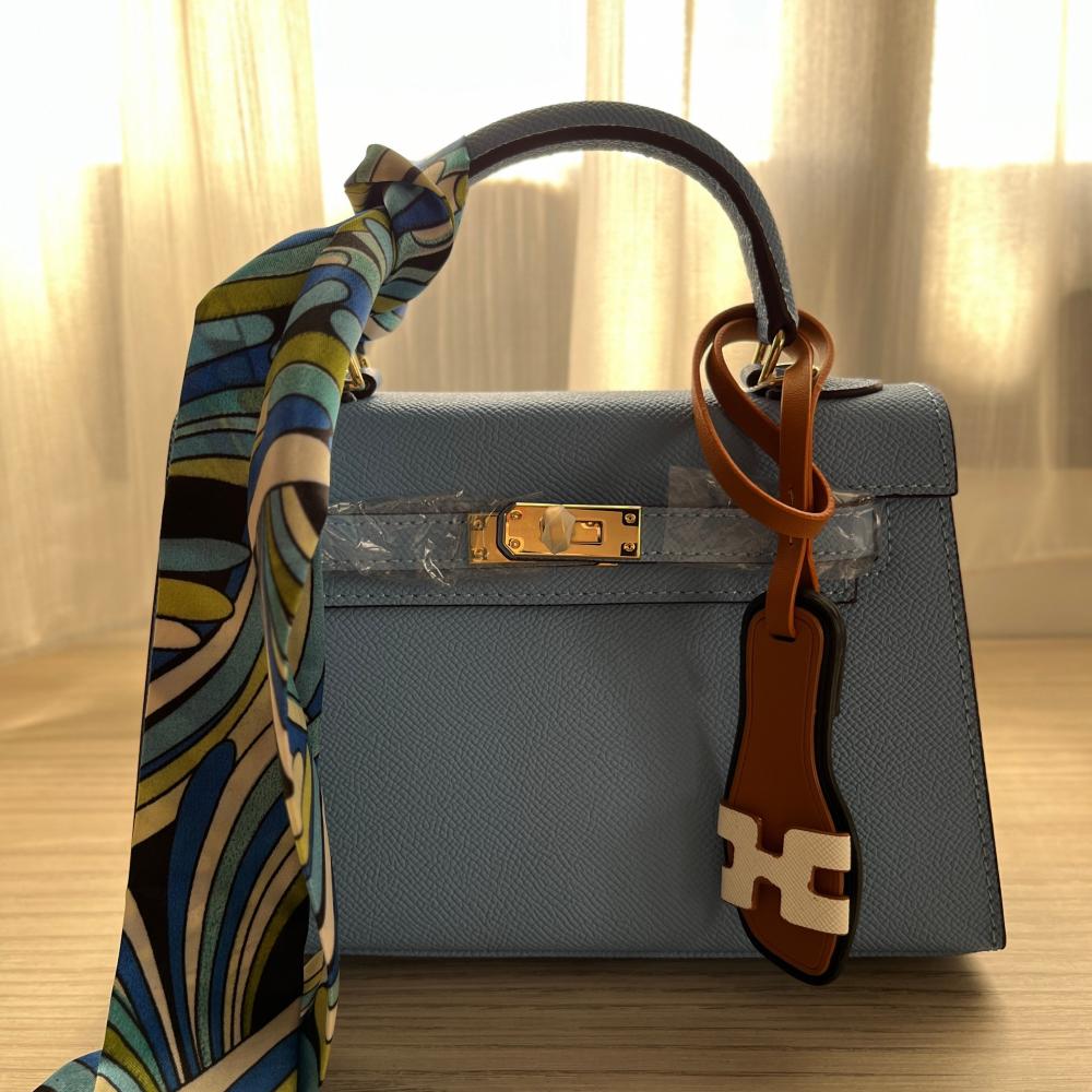 khaki Bag baby blue ميني كيلي ( سماوي)بالحجم الوسط بالجلد الطبيعي